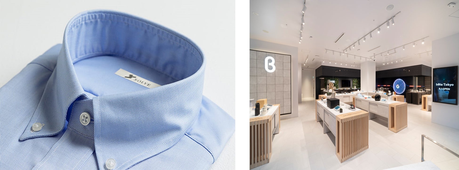 この結果を受け、オンラインだけでなくリアルの場でSOLVEのオーダーシャツならではのシルエットの美しさ、フィット感や着心地の良さを体感いただき、オーダーシャツに興味・関心を持っていただく場として、D2Cブランド「SOLVE」では初の実店舗展開となるb8taへの出品を決定いたしました。ユーザーの皆様からの人気の高い「超ノンアイロンシャツ」や「超ストレッチシャツ」に加え、昨年反響の大きかった春夏向けのビジネスカジュアルウェアを展開いたします。