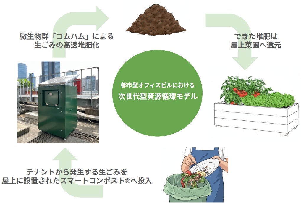 本取り組みでは、屋上菜園への生ごみ循環を自動化・効率化し、都市型オフィスビルにおける次世代型資源循環モデルの構築を目指します。