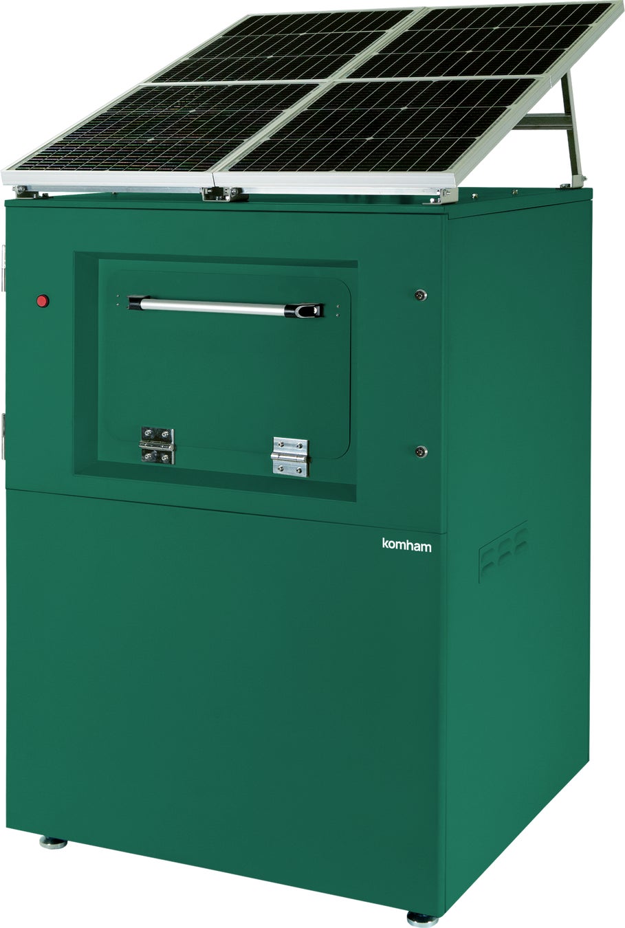 「スマートコンポスト®」は、AC電源や排水処理を必要としないソーラー発電で自動駆動する独立型の生ごみ処理機です。生ごみの高速処理が得意な当社微生物群「コムハム」がより安定して生ごみを分解できる環境をスマートコンポスト内に整え、街中や施設内に設置しても景観を損なわないデザインで開発しました。また、管理者は、クラウドにアップロードされたデータから、投入生ごみ量、生ごみ分解量/分解率、温室効果ガス排出削減量、バッテリー残量を取得することができ、エラー発生時はアラートがあがるため、最低限のメンテナンスで運用ができます。