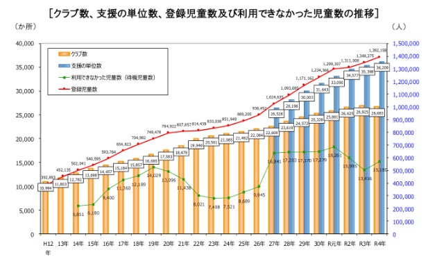 出典:令和4年(2022年) 放課後児童健全育成事業(放課後児童クラブ)の実施状況 -厚生労働省
