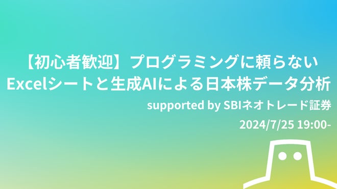 金融データ分析コミュニティ「マケデコ」主催の、「【初心者歓迎】プログラミングに頼らないExcelシートと生成AIによる日本株データ分析」セミナーに協賛