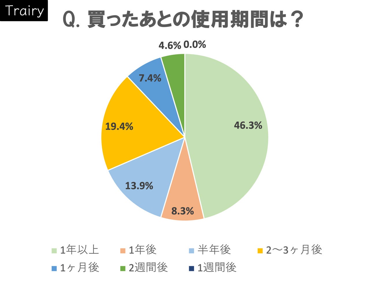 約半分の方が1年以上使用していて、続けることが出来ている人が多いことがわかりました。