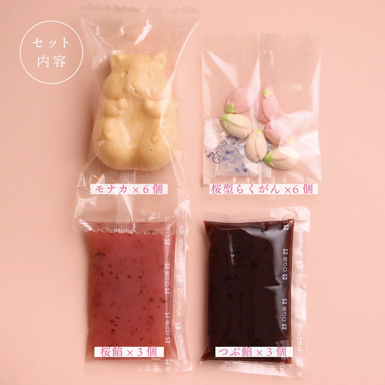 【セット内容】 モナカ皮×6個、桜餡×3個、つぶ餡×3個、桜型らくがん×6個