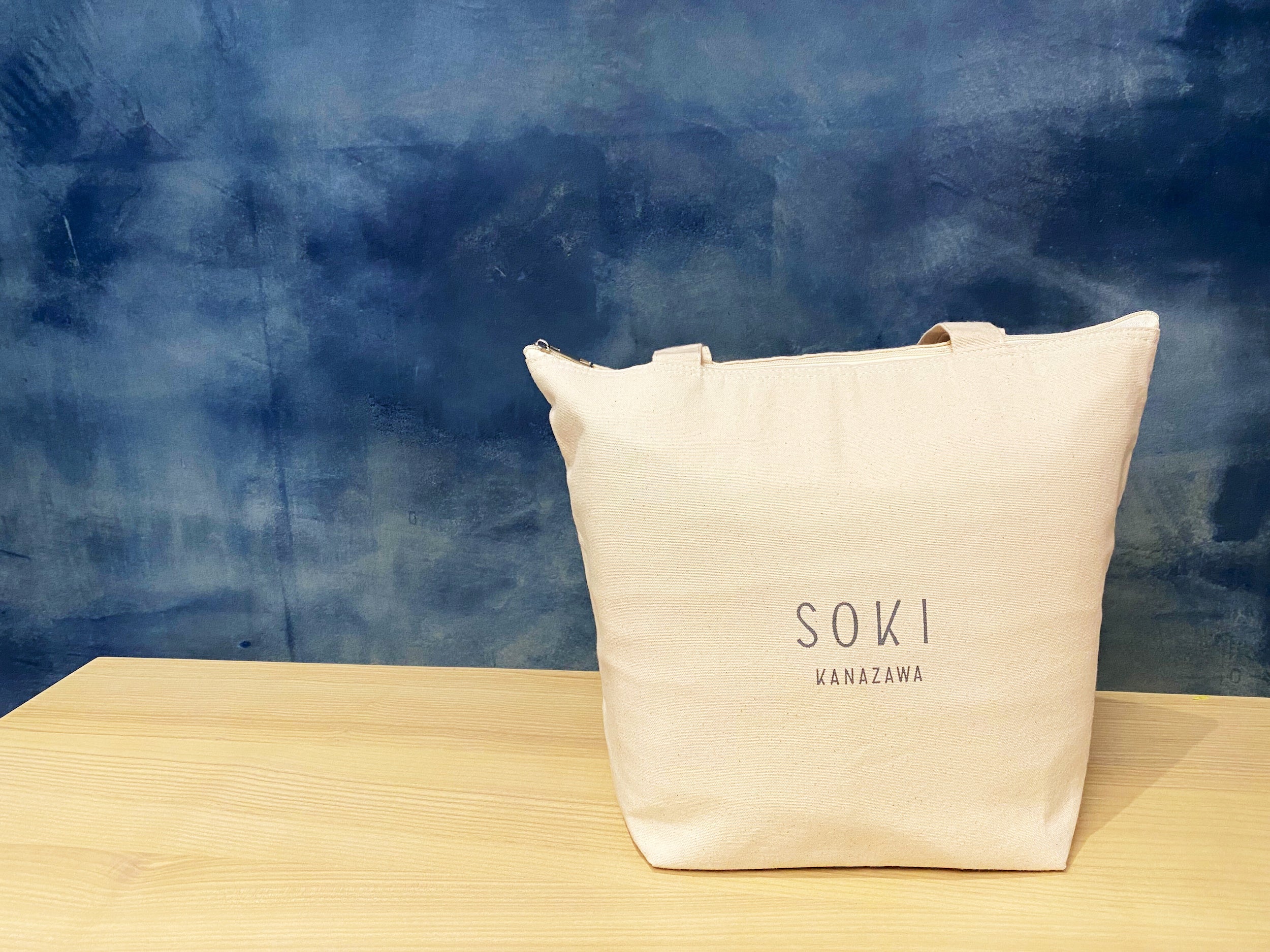 ■購入したお土産を入れてお持ち帰りいただくことができるSOKI KANAZAWAオリジナル保冷トートバッグをプレゼントいたします。(大人料金1名様にひとつ)。