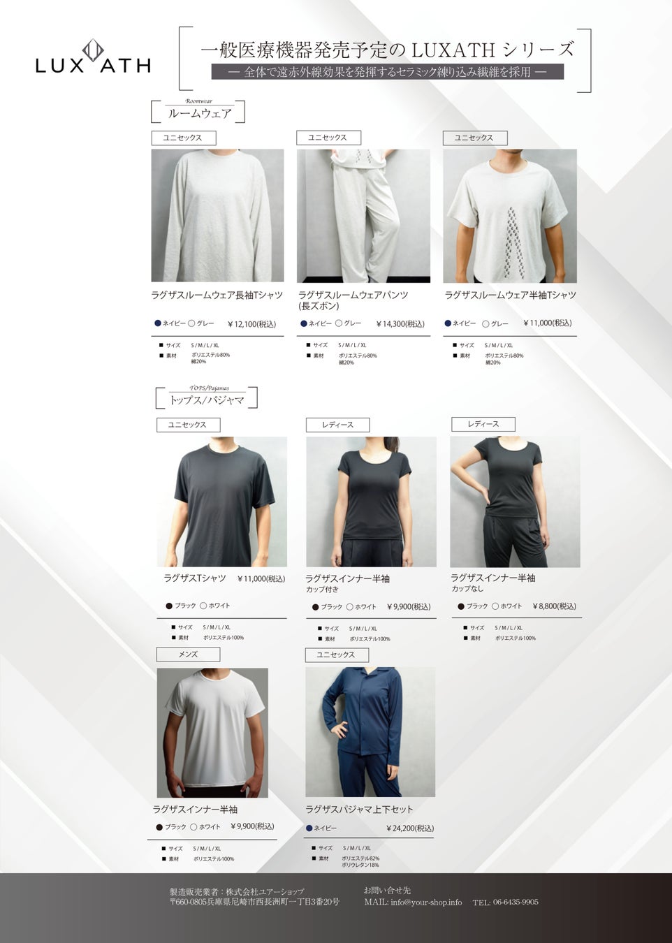 ■「LUXATH(ラグザス)」シリーズは、弊社が開発した家庭用遠赤外線血行促進用衣”としての一般医療機器モデルです。