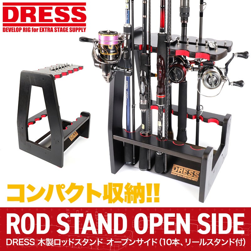 ●[DRESS] 木製ロッドスタンド オープンサイド (10本、リールスタンド付)