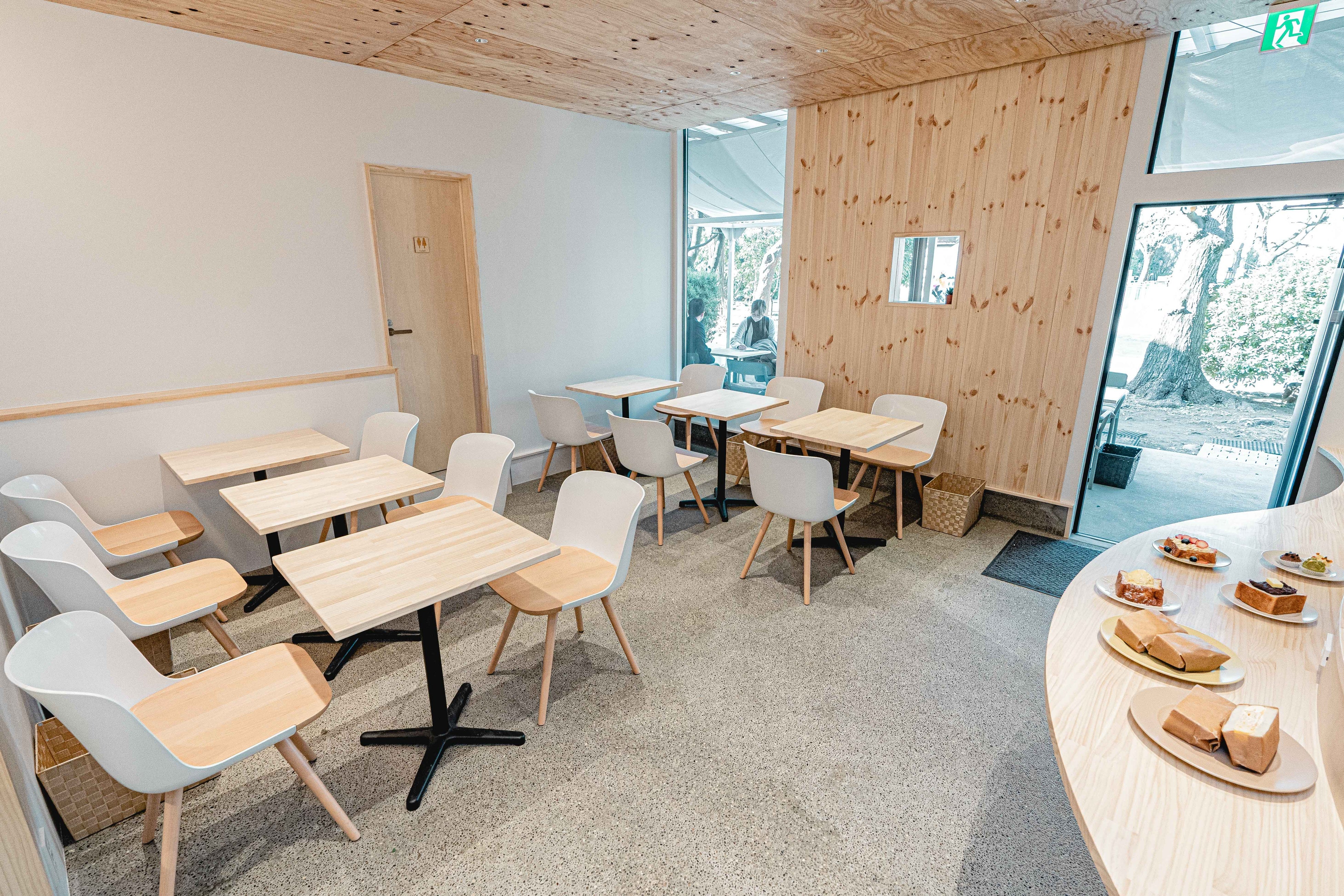 テラス席は、多目的広場やテニスコートも有する深川公園に直結。子どもたちの遊ぶ様子を見守りながら、大人は食事を楽しめるといった最高のロケーションとなっています。食事時間の雰囲気、人とのかかわり、体験などを通し、生きていく上で欠かせない「食べること」が好きになるようにと工夫し店舗づくりをいたしました。