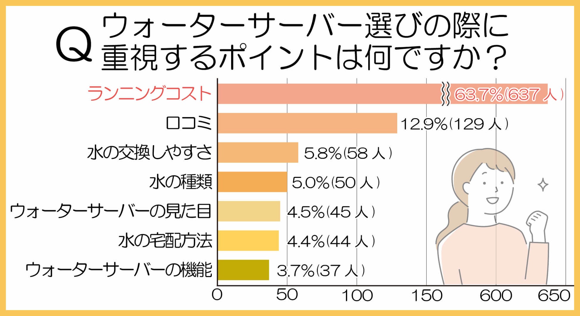 ■ウォーターサーバー選びで重視するのは「ランニングコスト63.7%(637人)」