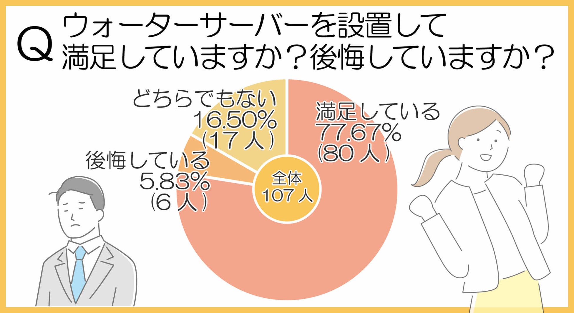- 77.67%(80人)がウォーターサーバーの設置に「満足している」と回答