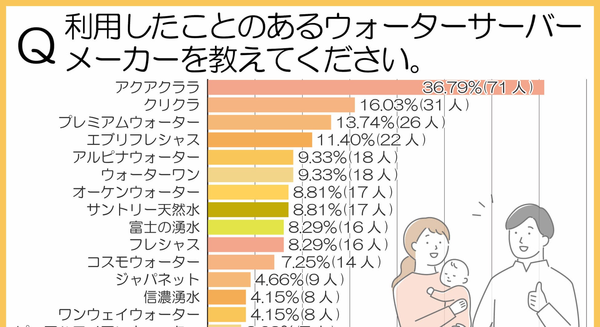 - 1位:アクアクララ 36.79%(71人)