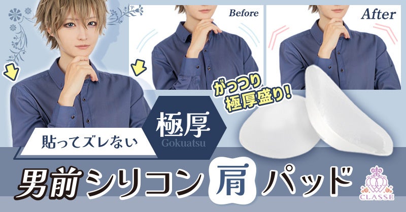 ”コスプレ総合専門店”としてウィッグやカラコン、コスメ、衣装などを広く手掛ける株式会社クラッセ(https://classe.jp/兵庫県姫路市)は、2026年1月22日(木)に『男前シリコン肩パッド(極厚)』を発売しました。