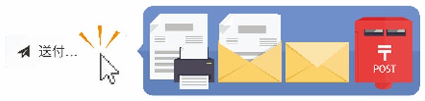 郵送代行を利用することにより、今まで手作業で行っていた、印刷・封入・切手貼付・ポスト投函などの郵送に必要な一連の業務を外部委託することができ、経理担当者の工数の削減や出社の必要性を下げることができます。『MakeLeaps』は標準機能として郵送代行が搭載されており、1通 148円(1封筒あたり5枚同封まで同料金)で利用できます。また、電子送付「セキュア送信」であれば、追加費用は必要なくいつでも無料(※5)で送付できます。