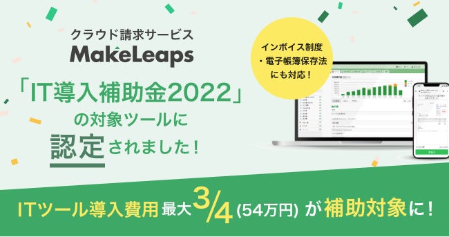 ・「IT導入補助金2022」の対象ツールにクラウド型請求管理サービス『MakeLeaps(メイクリープス)』が認定