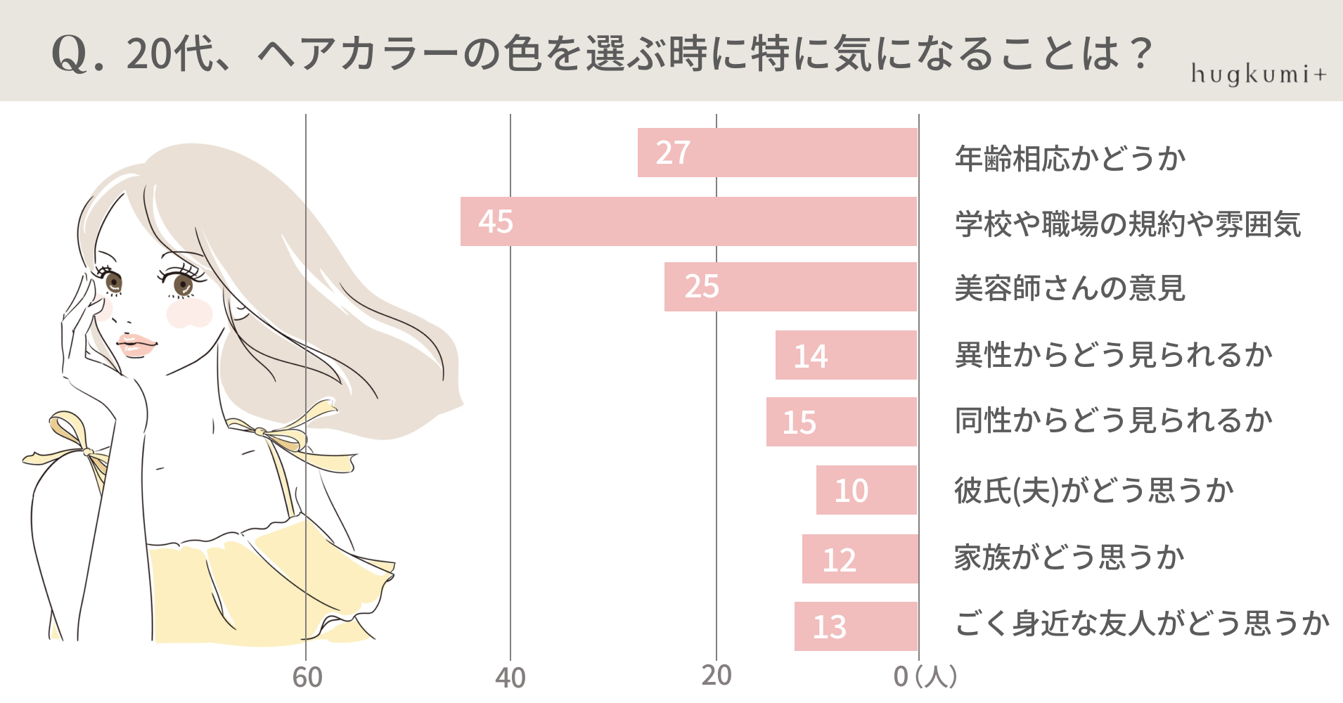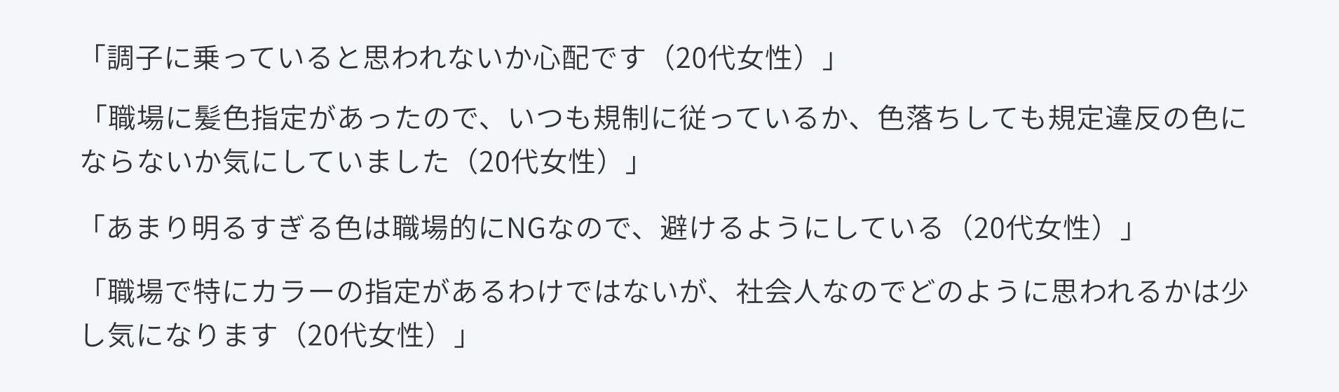 自由に髪色を選べると思われがちな20代も、いちばん気にしているのはやはり職場環境のようです。