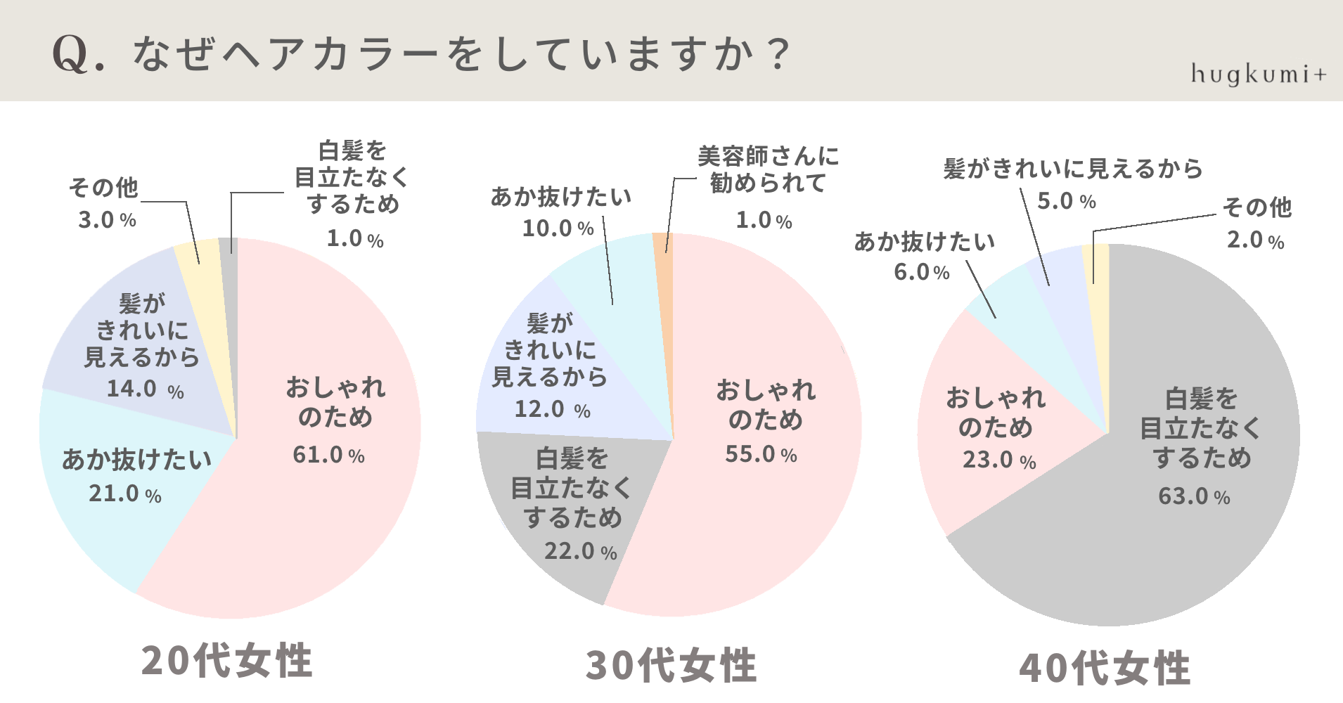「なぜヘアカラーをしていますか?」という質問の答えは、年代により大きく異なる結果となりました。
