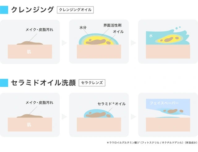 そして完成した商品が、クレンジングでも洗顔でもない、汚れを落としながらスキンケアまで完了できる新しいオイル「セラクレンズ」です。