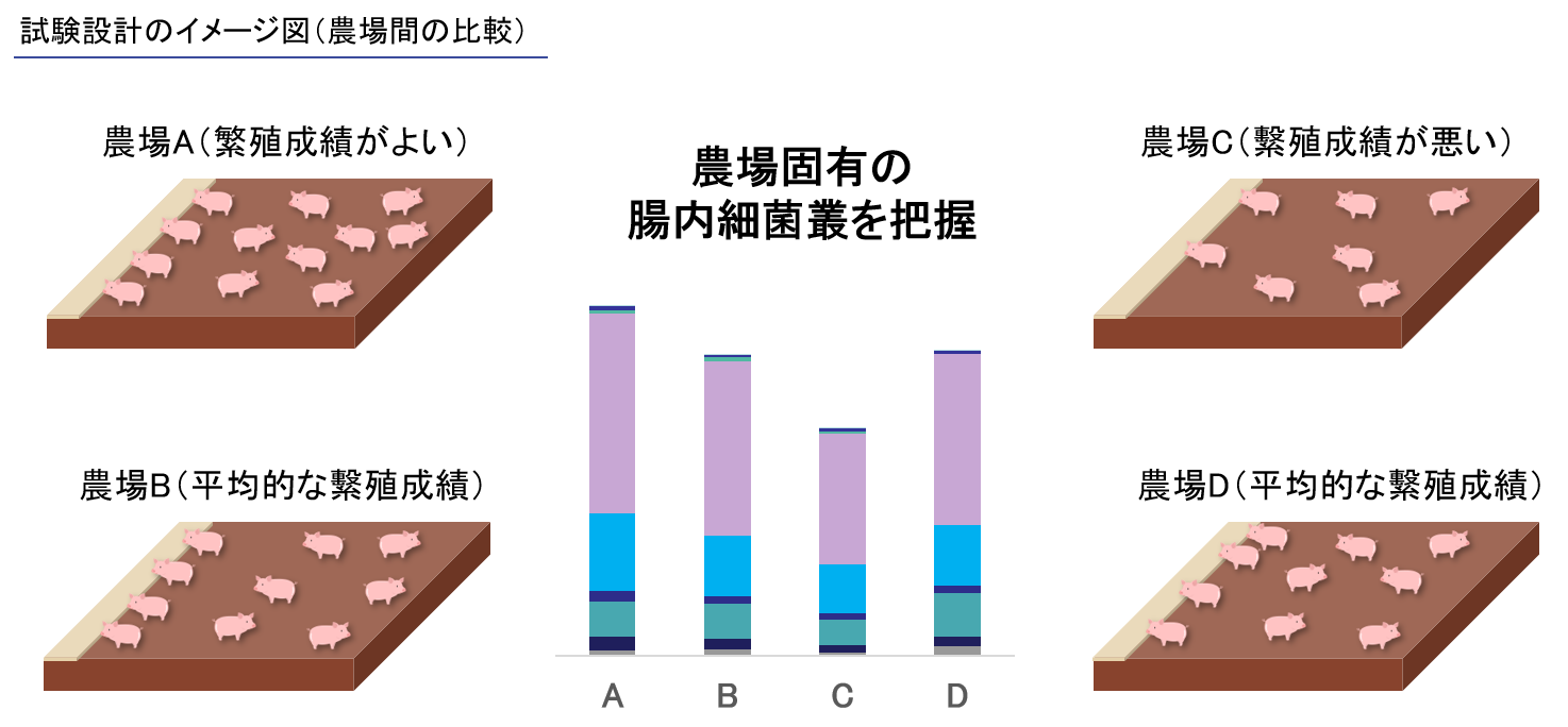 しかし、ヒトとは異なり産業動物においては、腸内細菌叢の網羅解析を駆使した研究はまだまだ黎明期を抜け出せない状況にあります。また、腸内細菌叢に関するデータの蓄積も乏しく、「健康」や「生産成績向上」に寄与する腸内細菌群も未知な部分がほとんどです。