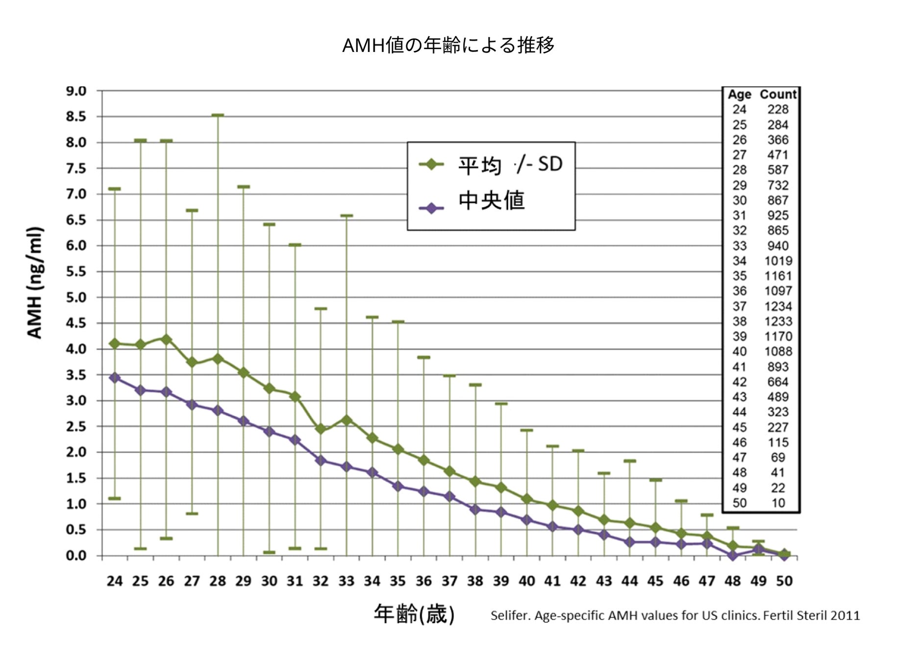 AMH検査とは、少量の血液の採取で卵子の周りの細胞から出るホルモンであるAMH(アンチミューラリアンホルモン)の値を測ることにより、身体に残された卵子の数の目安を知ることができる検査です。卵子は特殊な細胞で、皮膚や臓器など、人間の一般的な細胞が日々細胞分裂を繰り返して生まれ変わるのに対し、 卵子の元となる卵細胞は新しく生まれず、卵巣の中の卵子の個数は減少し続けます。卵子が減少するスピードには、個人差がとても大きいことが分かっており、現代の日本人女性の閉経は50歳前後が平均ですが、100人に2~3人は30代で閉経してしまうと言われています。この早発閉経の兆候も、AMH検査で簡単に知ることができます。将来の妊娠を考える女性にとって、できるだけ早く自分のAMH値を知ってカラダの状態を理解し、必要に応じて婦人科の検診を受けることは、自らが望むライフプランの実現に大きな意味を持ちます。