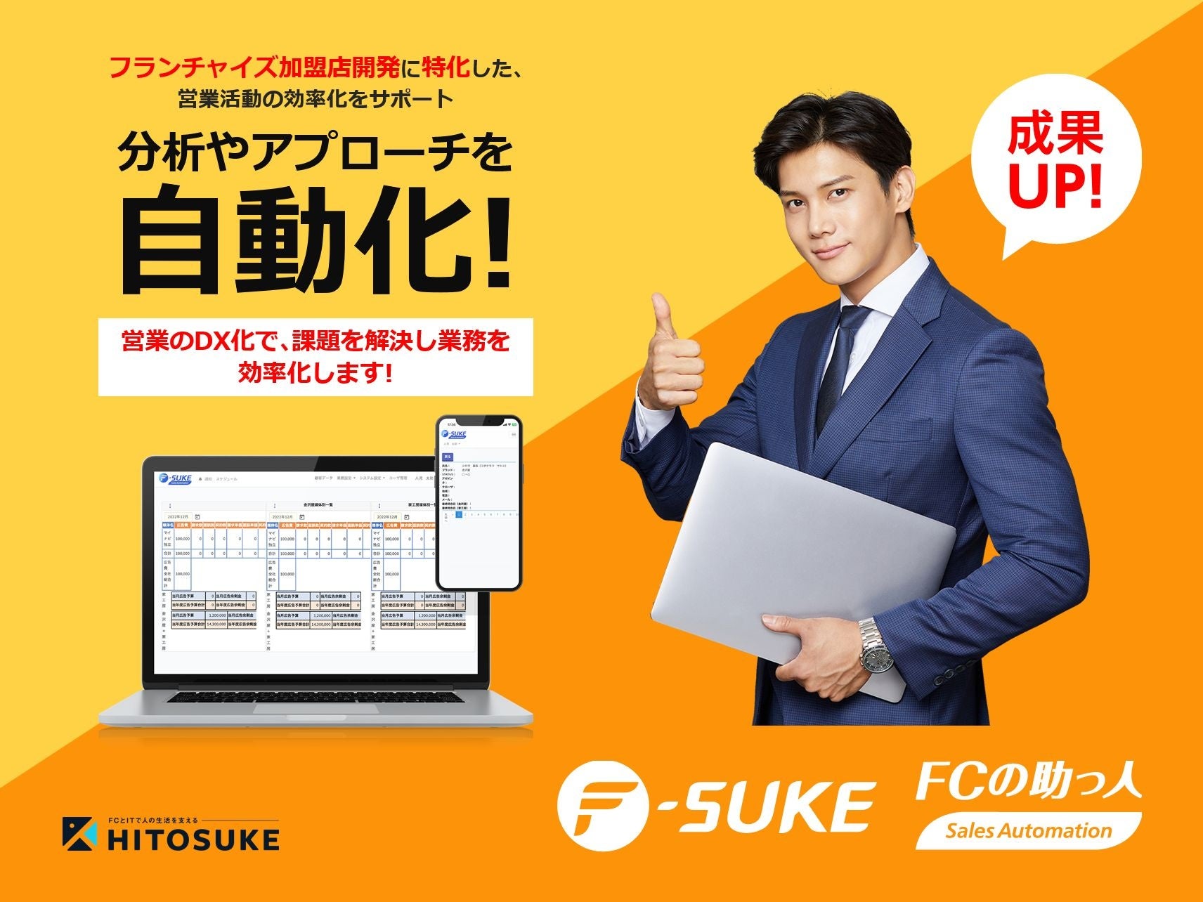 フランチャイズ本部の運営、他社フランチャイズへの加盟、他社フランチャイズ本部の加盟店開発代行、及びコンサルティング、フランチャイズ本部向けIT支援を手掛ける株式会社HITOSUKE(本社:東京都中央区、代表取締役 CEO 小比田 隆太)は、フランチャイズ加盟店開発の営業活動に特化したMA+BA一体型のCRMツール『F-SUKE Sales Automation』を、2023年1月16日(月)に提供を開始しました。本ツールにより、これまで営業マンがEXCELや紙の情報を元に手動管理してきた作業を自動化するほか、顧客の状態やアクションを営業マンに随時通知することで勘に頼らない判断を可能とし、契約獲得までの営業活動の効率化を実現します。
