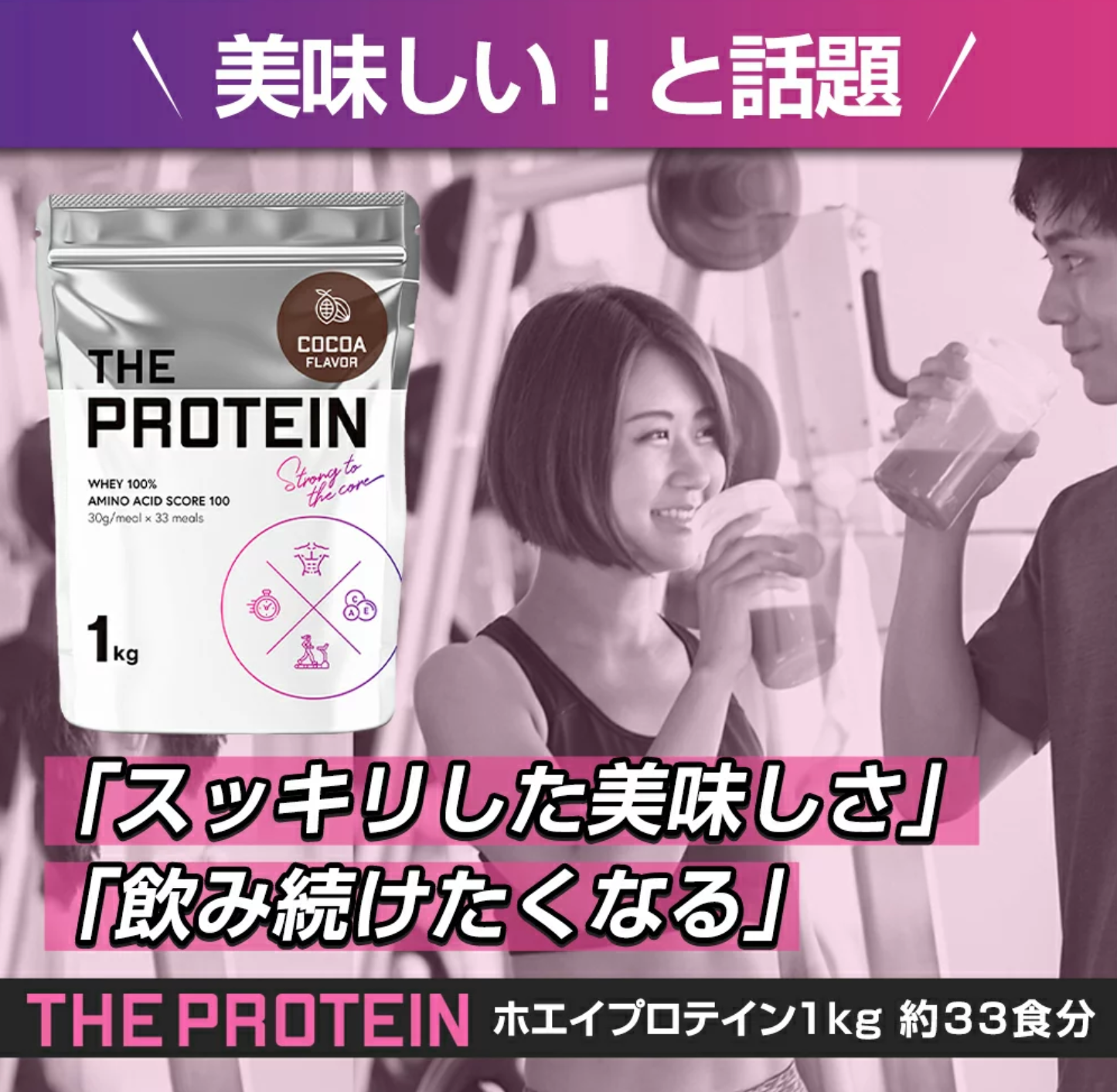 スッキリ・爽やかな味わいのプロテインで、甘すぎず、くどさを感じることがないので毎日お飲みいただける商品となっております。