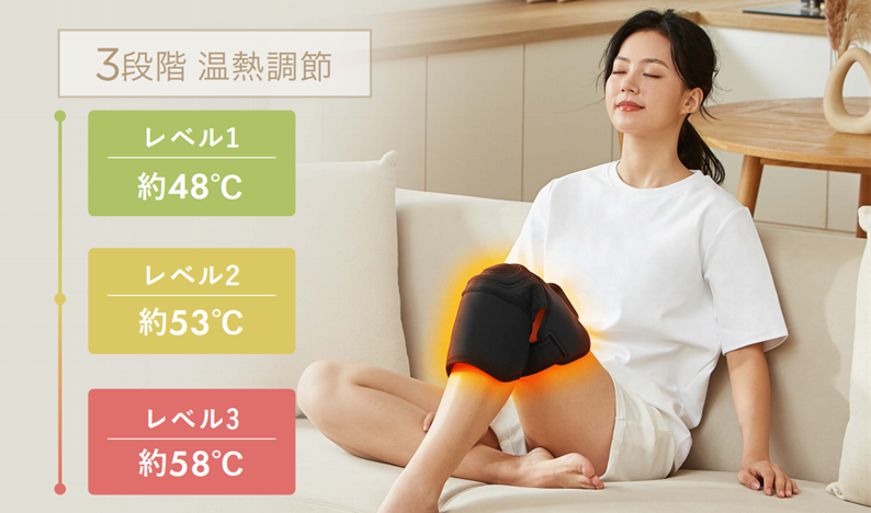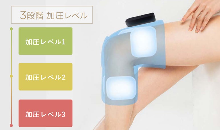 温熱と加圧を一緒に使うことで効率よく膝をケアが可能。