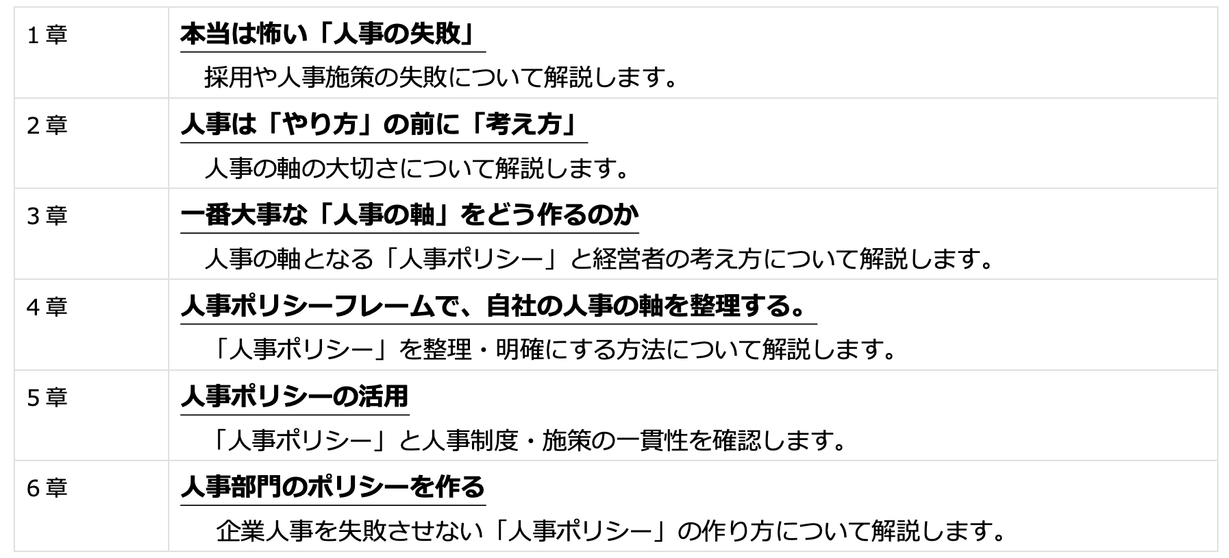 流行りの人事制度が自社でうまく機能しない理由や採用失敗の原因、自社に合う人材を採用し育成する方法など、人事施策を成功に導くために重要な考え方を詳細にお伝えしています。