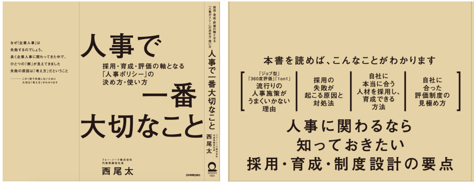 総合人事コンサルティング会社のフォー・ノーツ(本社:東京都港区、代表取締役社長:西尾太、以下当社)は、西尾 太の最新著書「人事で一番大切なこと」を11月24日、日本実業出版社より発売します。