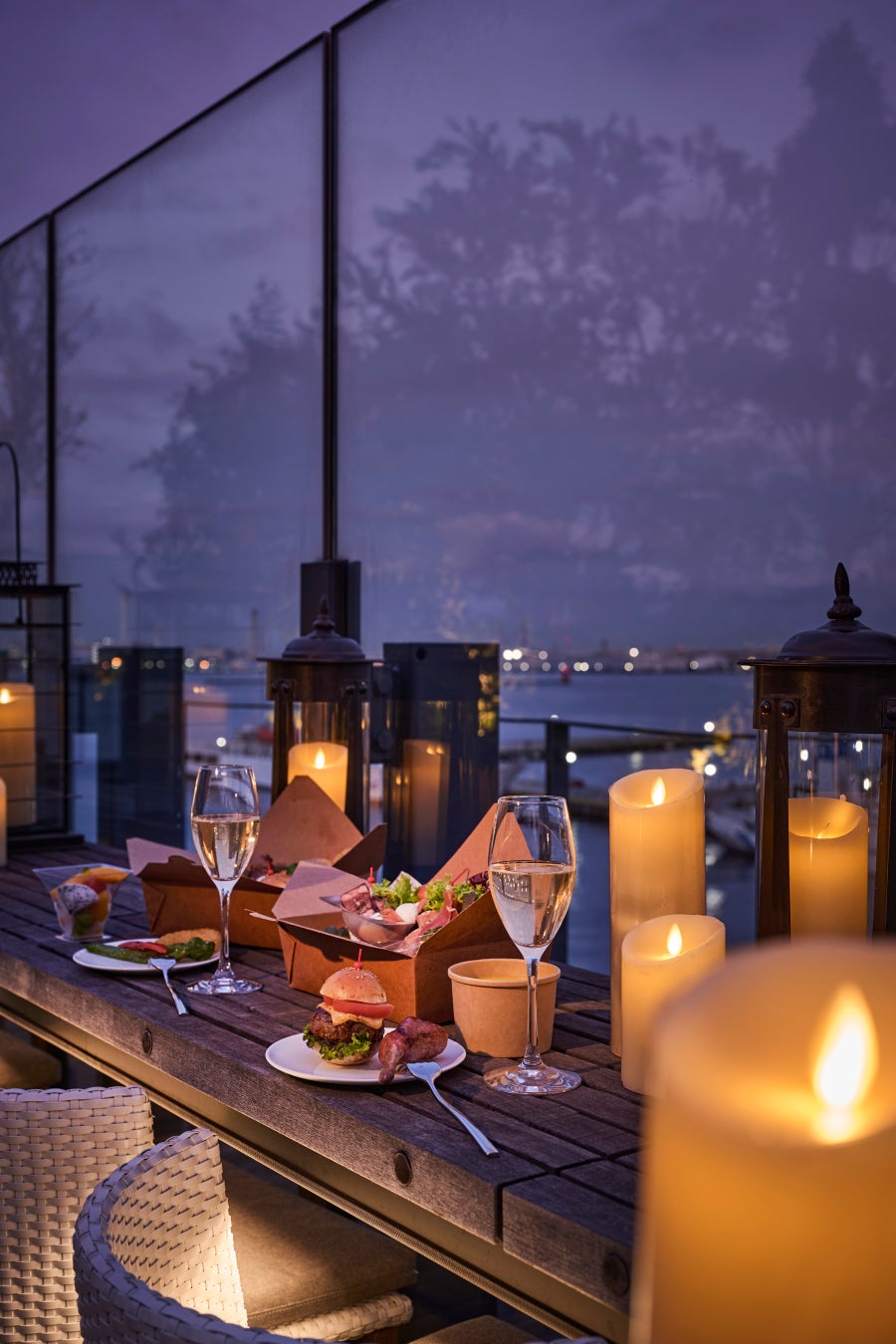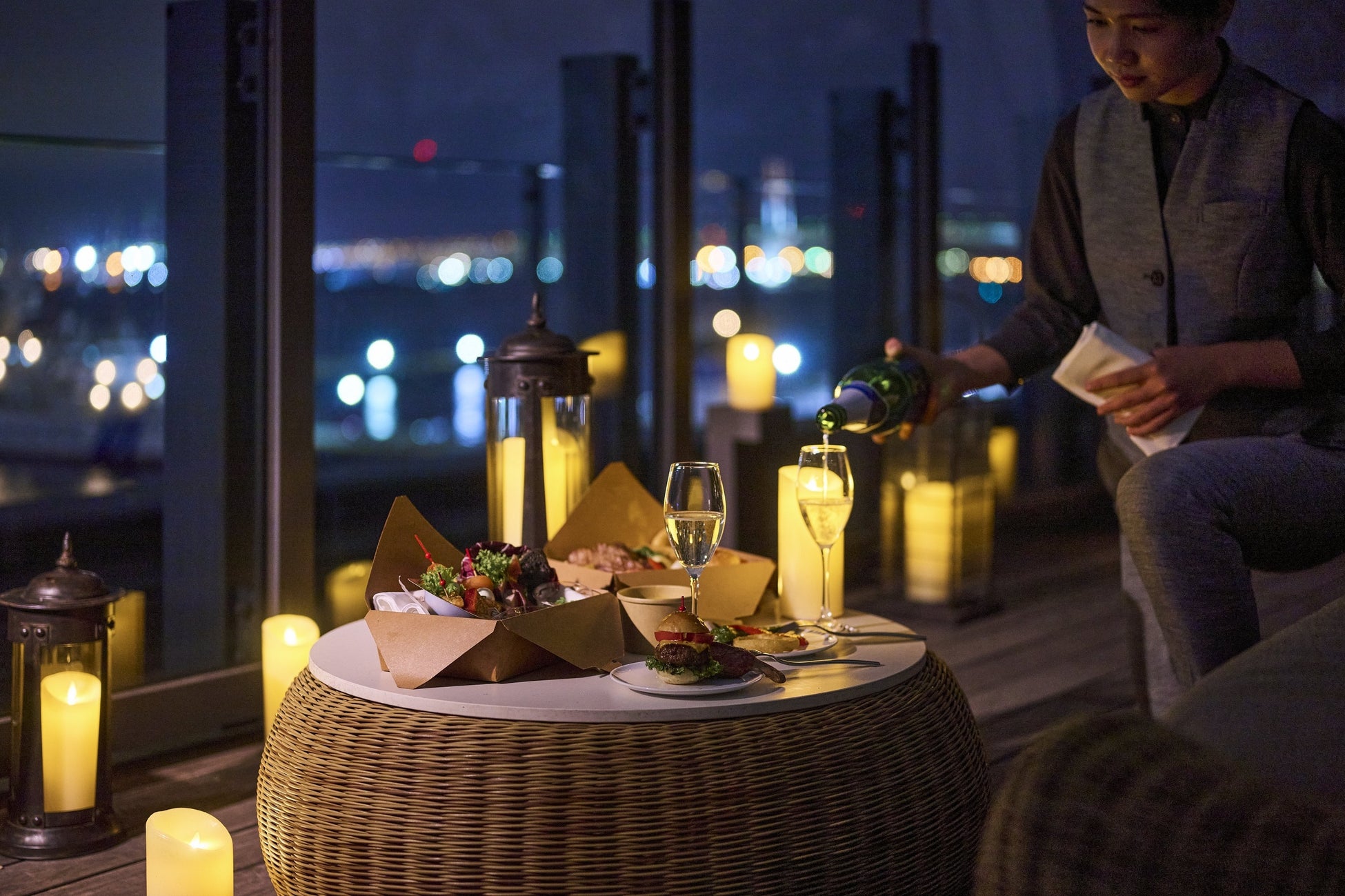 「Rooftop Night Pier-nic」は、ピクニックボックスに入ったホテルならではの上質な料理を開放的な屋上空間のルーフトップでお召し上がりいただける大人のピクニックプランです。通常は宿泊プランでのみご提供する内容を、5周年を記念し12月の5日間に限定し、宿泊されないお客様にもご体験いただけます。