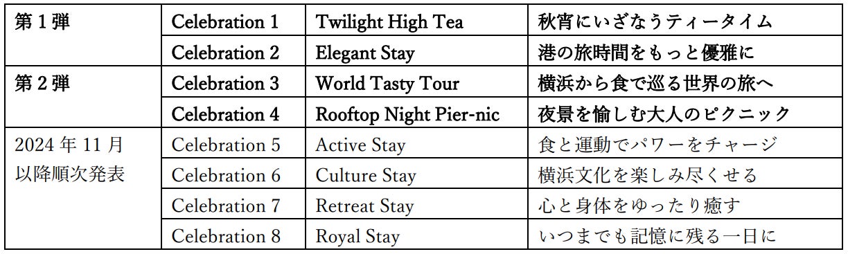 三方を水に囲まれた国内でも希少な海上立地にあるインターコンチネンタル横浜Pier 8は、海を間近に感じるくつろぎの新しい滞在型リゾートです。開業5周年記念特別企画「8 Celebrations」では、5つの多彩な宿泊プラン「Elegant Stay」「Active Stay」「Culture Stay」「Retreat Stay」「Royal Stay」と、Pier 8でしか味わえない3つの体験プラン「Twilight High Tea」「World Tasty Tour」「Rooftop Night Pier-nic」という、8つの祝祭〈セレブレーション〉を2025年春にかけて段階的にご提供します。