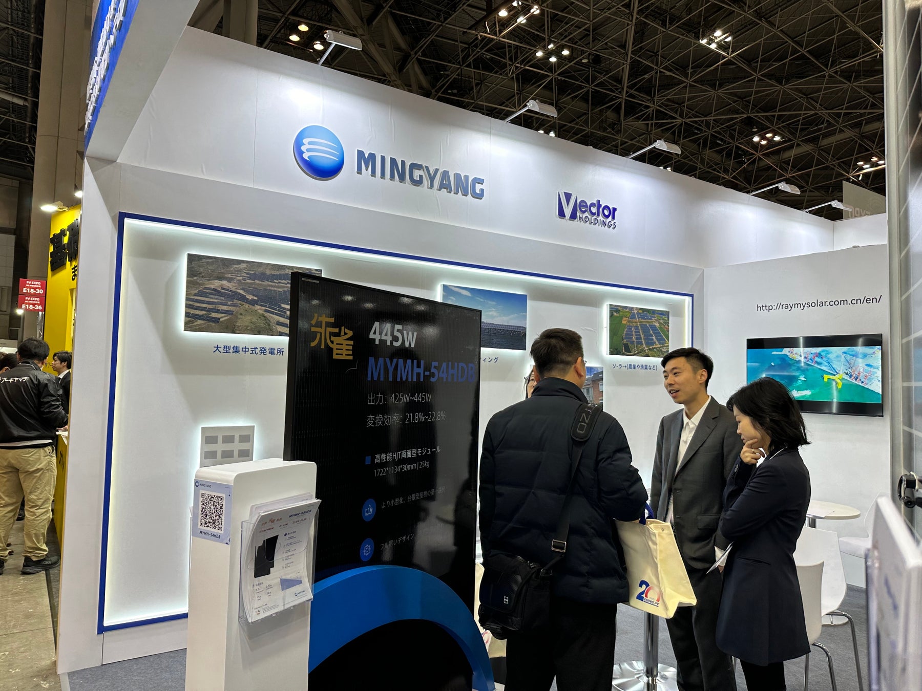 株式会社ベクターホールディングス(本社:東京都新宿区、代表取締役社長:加藤 彰宏、以下:ベクターHD)は、明陽智慧能源集団股分有限公司(英語表記:Mingyang Smart Energy、以下:Mingyang社)が太陽光パネルメーカーとして日本に進出する支援のため、世界最大級のエネルギー総合展(SMART ENERGY WEEK 春 2024)にてブース出展し、MINGYANG太陽光パネル「N型HJT 高性能を導く 次世代型太陽電池ヘテロジャンクション(HJT)」を展示いたしました。