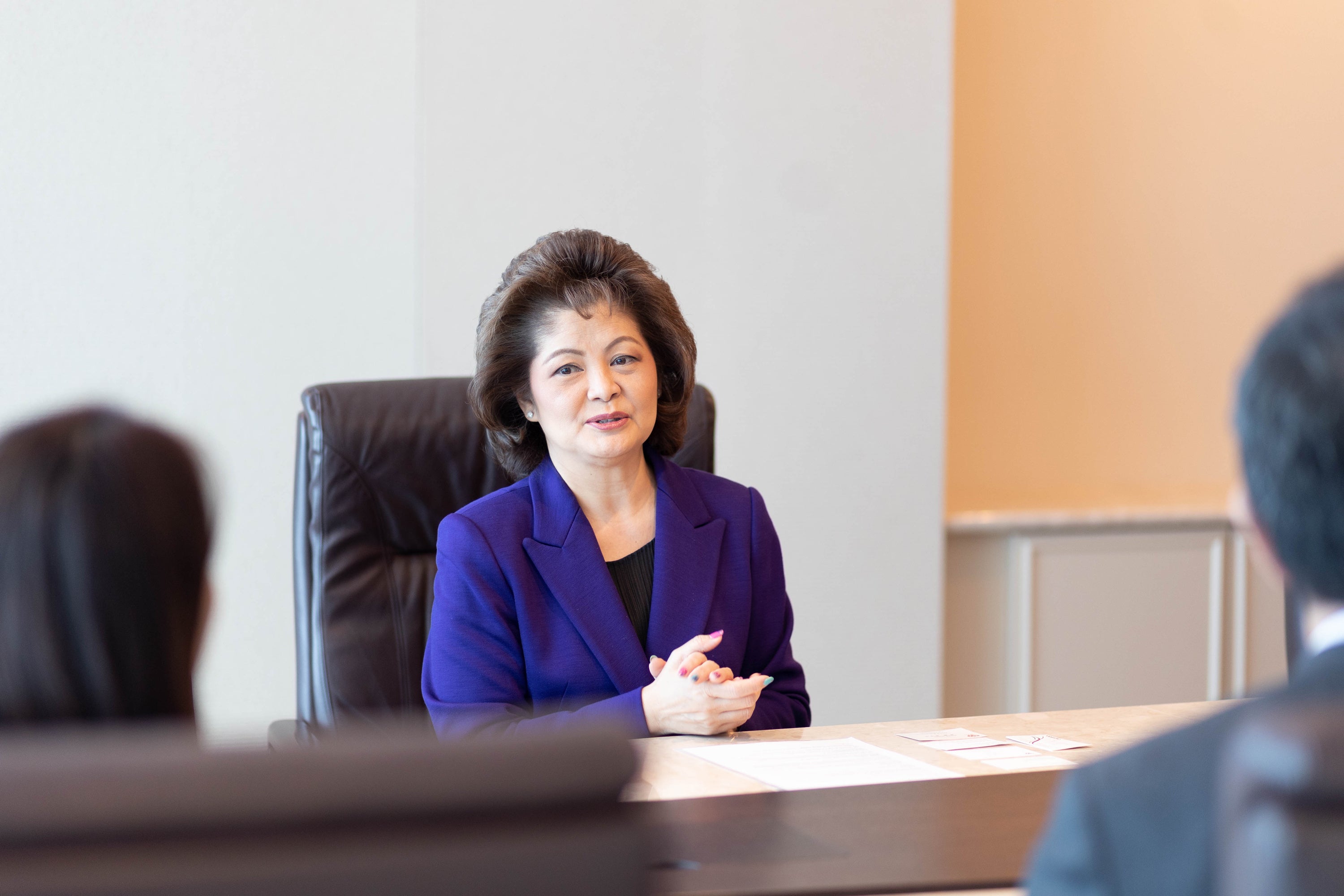 鈴木代表取締役、山野愛子ジェーン校長のほか、曽我グループの美容部門〈bittersweet beauty〉望月店長がインタビューに同席いたしました。