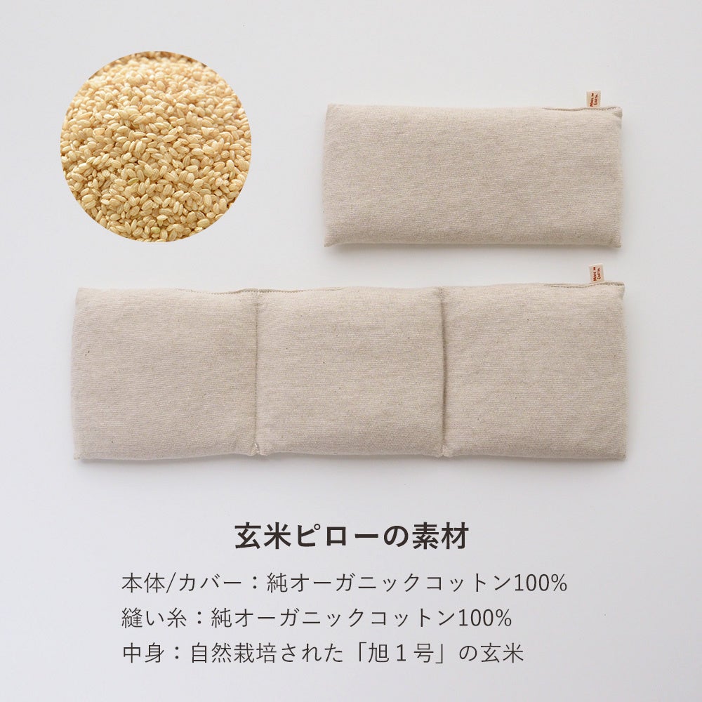 この「メイド・イン・アースの玄米ピローシリーズのアイピローとネックピロー」は、純オーガニックコットンの天竺ニット生地を使用し、中身の素材に、西日本でかつて一世を風靡した幻のお米「旭1号」の自然栽培玄米の古米を活用しエコフレンドリーで、カラダを癒しリラックスさせてくれるアイテムです。