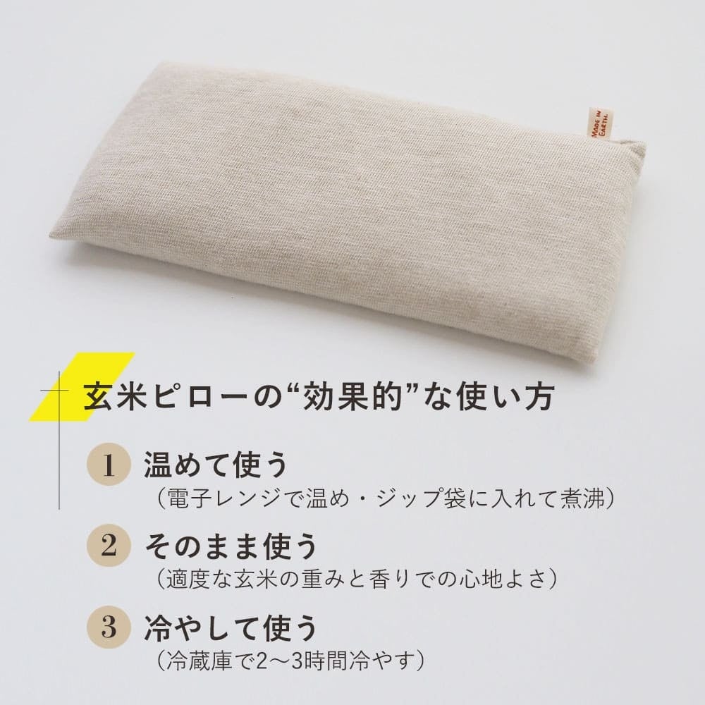メイド・イン・アースの開発スタッフの一人が15年ほど前から、個人的に手作りし愛用する中で、カラダのメンテナンスが簡単にできるアイテムとしての良さを長年実感し、「いつかなからず製品化をして不調を感じている人たちに届けたい!」と強く考えていました。一般的には、あずきなどがつかわれていますが、玄米を入れることでの感触の良さを追求するために、玄米を探していたところ、熊本県で「幻のお米、旭1号」を栽培している生産者さんの協力で、古米を使った玄米ピローシリーズの制作が実現いたしました。