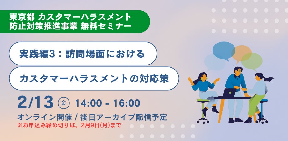 【本日1/16受付開始】東京都 カスタマーハラスメント防止対策推進事業 「訪問場面におけるカスタマーハラスメントの対応策」セミナー2月13日開催