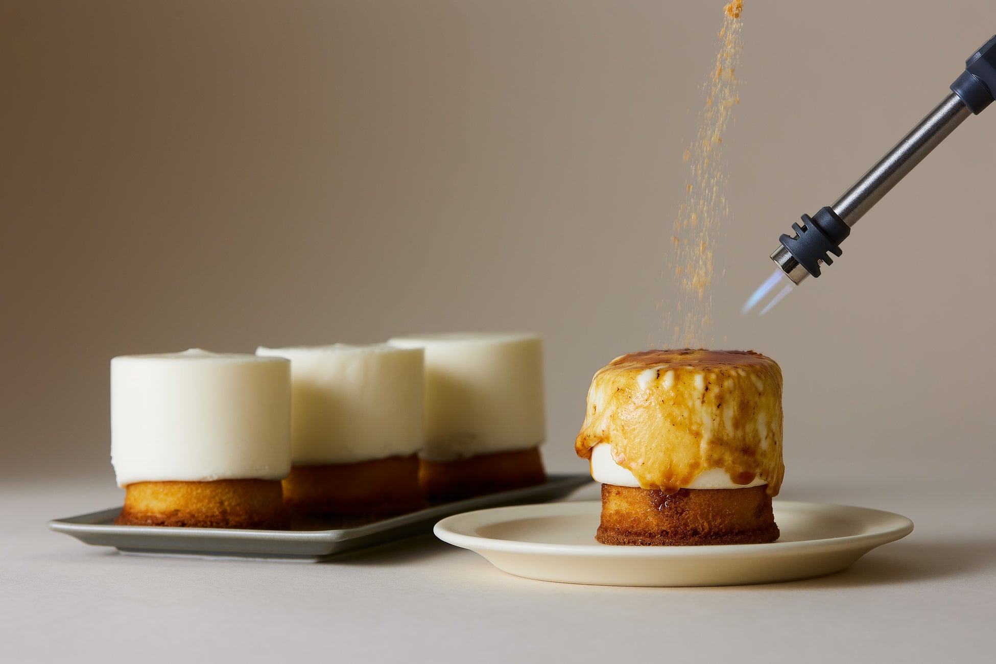 バーナーでカラメルが溶けるまで炙る。