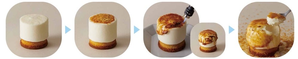 「MELTY MAGIC」は2層のチーズムースと、2層のダマンドタルト層からなる4層のチーズケーキを、お客様自身でケーキの表面を炙って仕上げていただくブリュレチーズケーキ