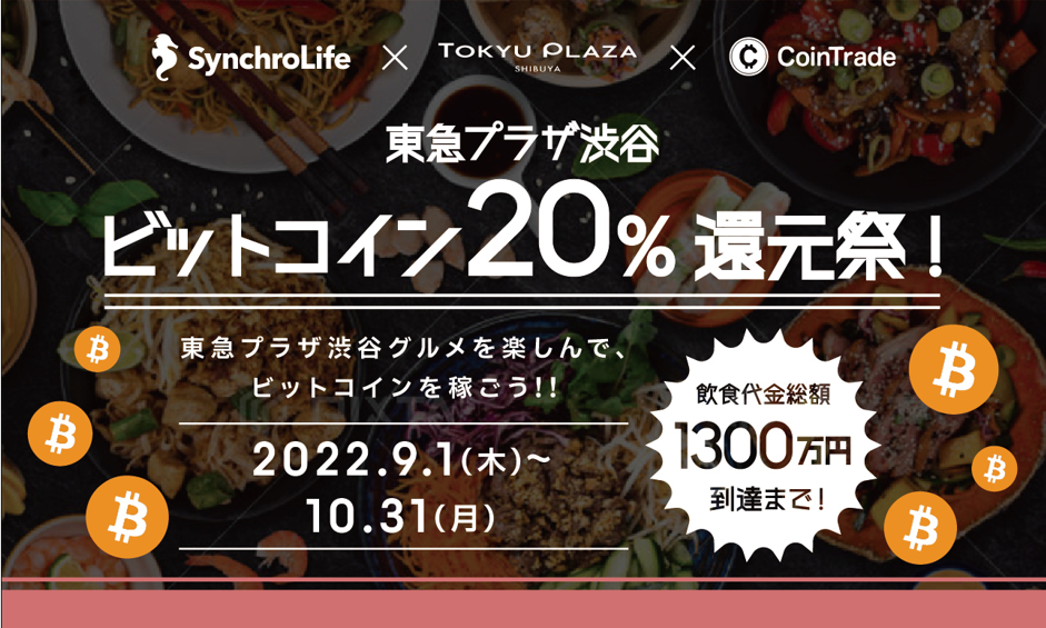 「CoinTrade」、グルメSNS「シンクロライフ」、東急プラザ渋谷が「ビットコイン20%還元祭」を共同開催!