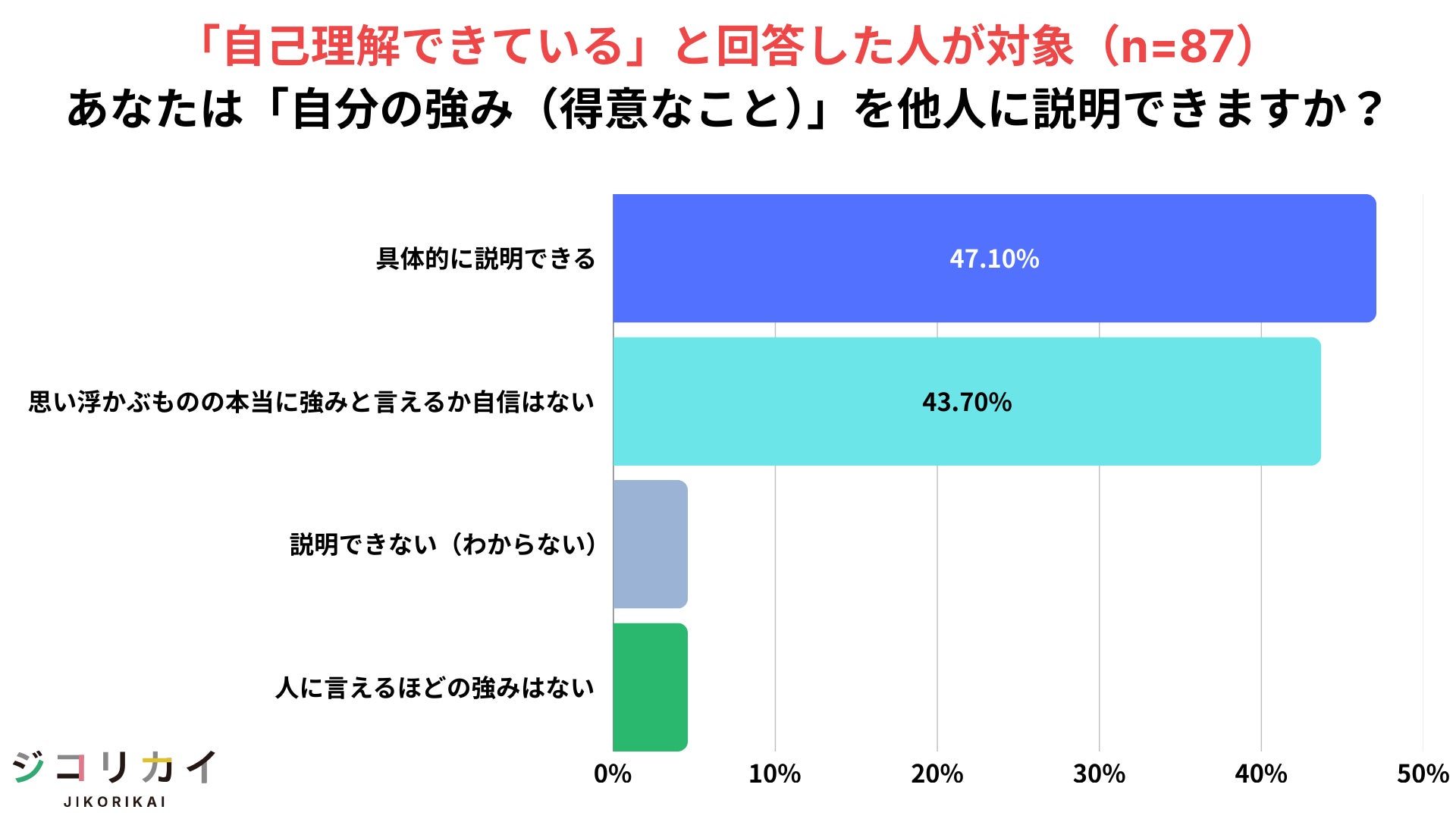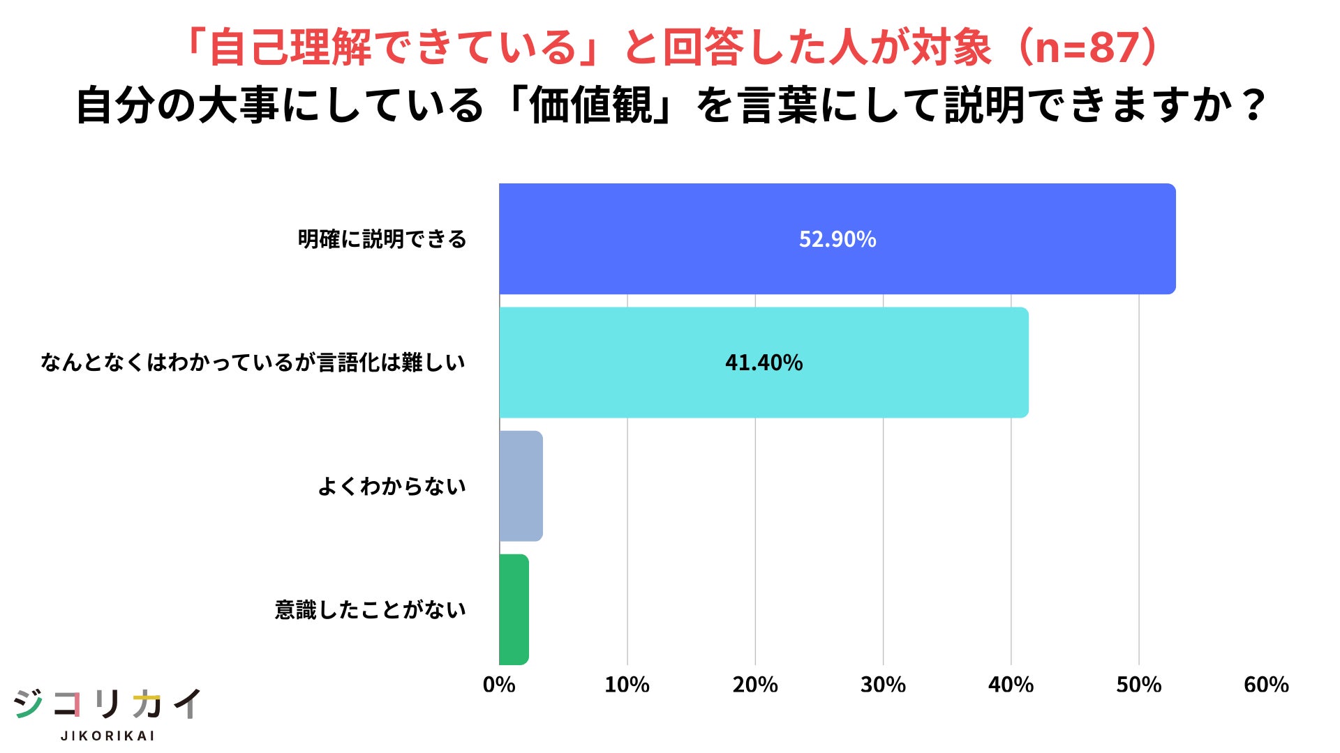 つまり、「自分を理解できている」という意識とは裏腹に、実際は言語化できない=深層の自己理解には至っていないことがうかがえます。