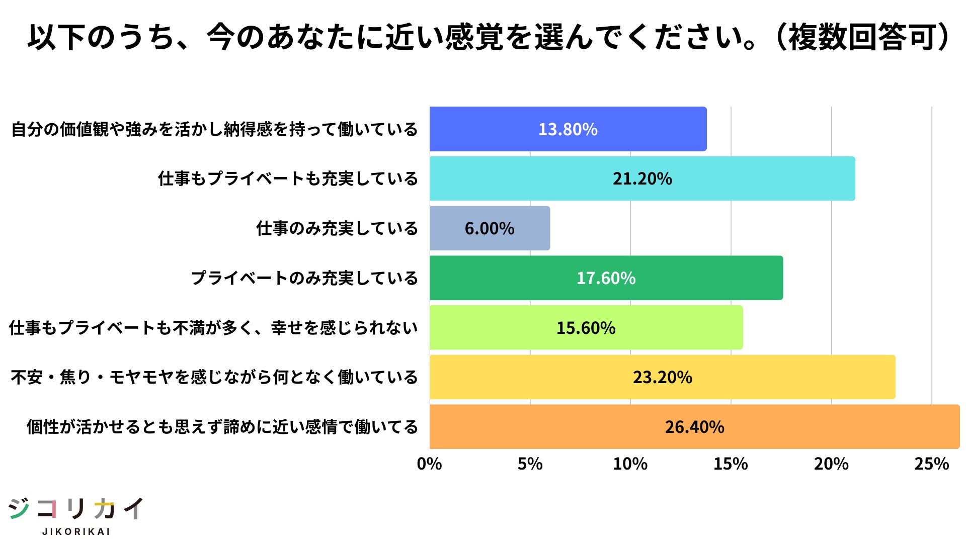 最後に紹介するのは、「仕事や人生に対する今の感覚」について複数回答で尋ねた質問です。