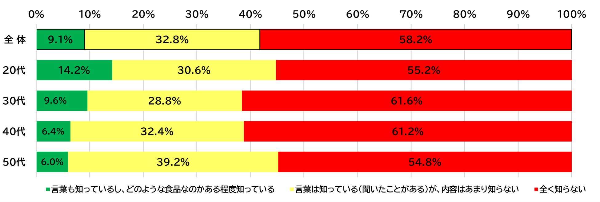 【4】ゲノム編集食品の認知度は広がりを見せず、全体の58%が「全く知らない」