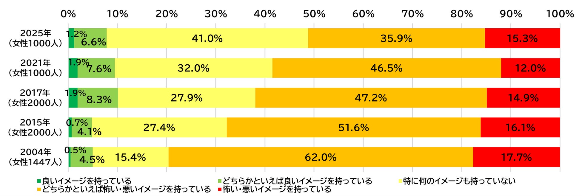 ※比較条件を統一するため、2017年以前は女性のみを調査対象としていたことに合わせ、2021年・2025年は女性のみ抽出して集計。