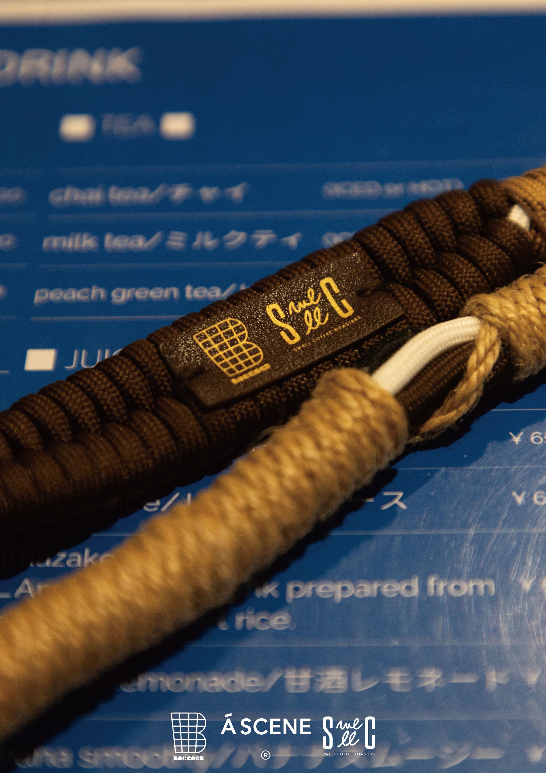 今回、お互いのコミュニティーに属する人々が使えるようなデイリーアイテムをトリプルコラボレーションで実現。A SCENEを代表する定番アイテムである「Design paracord shoulder」や