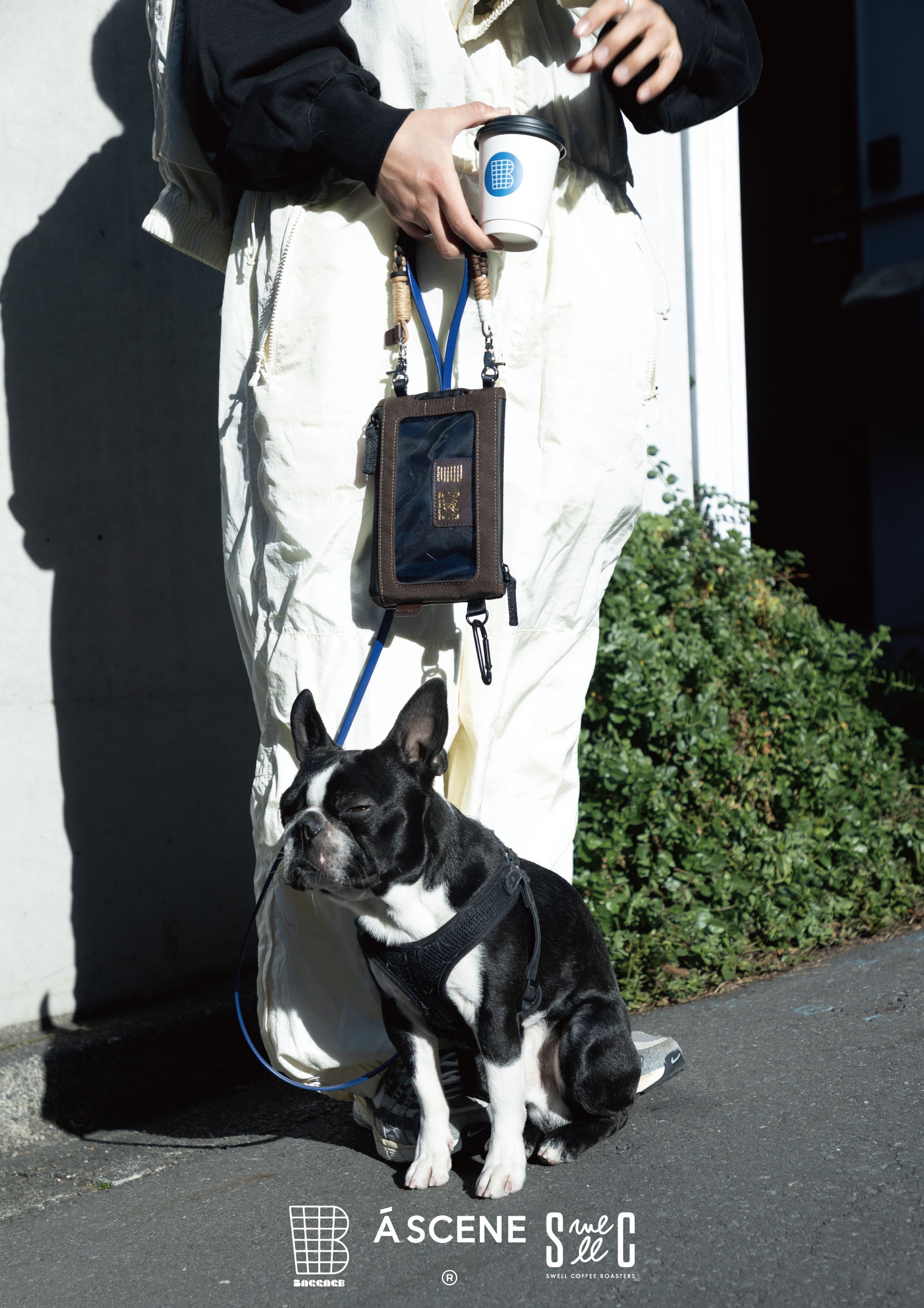 A SCENEオリジナルのスマホポーチ一面をコーヒーレザーで仕上げました。