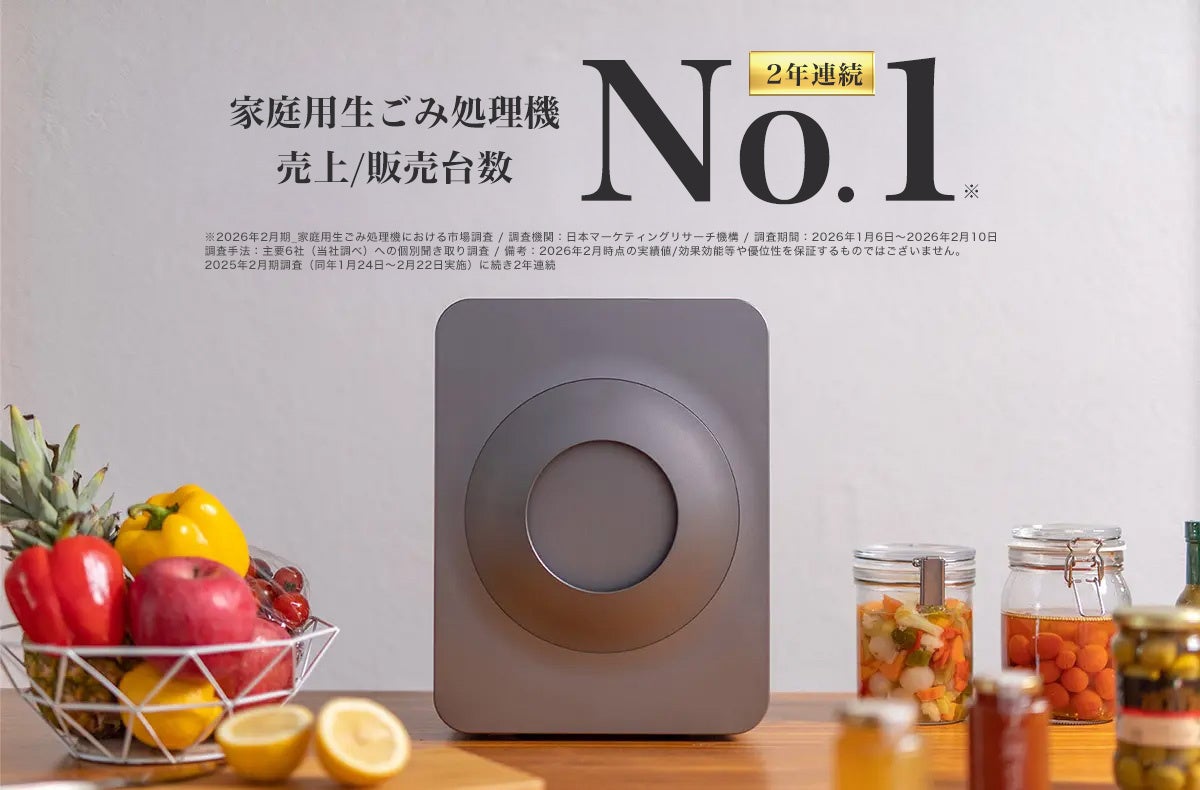 株式会社ALPACA(所在地:東京都港区、代表取締役:今野裕樹)が展開する家庭用生ごみ処理機「loofen(ルーフェン)」は、日本国内の家庭用生ごみ処理機市場において、2024年・2025年の2年連続で「売上No.1」「販売台数No.1」の2冠※を達成しました。