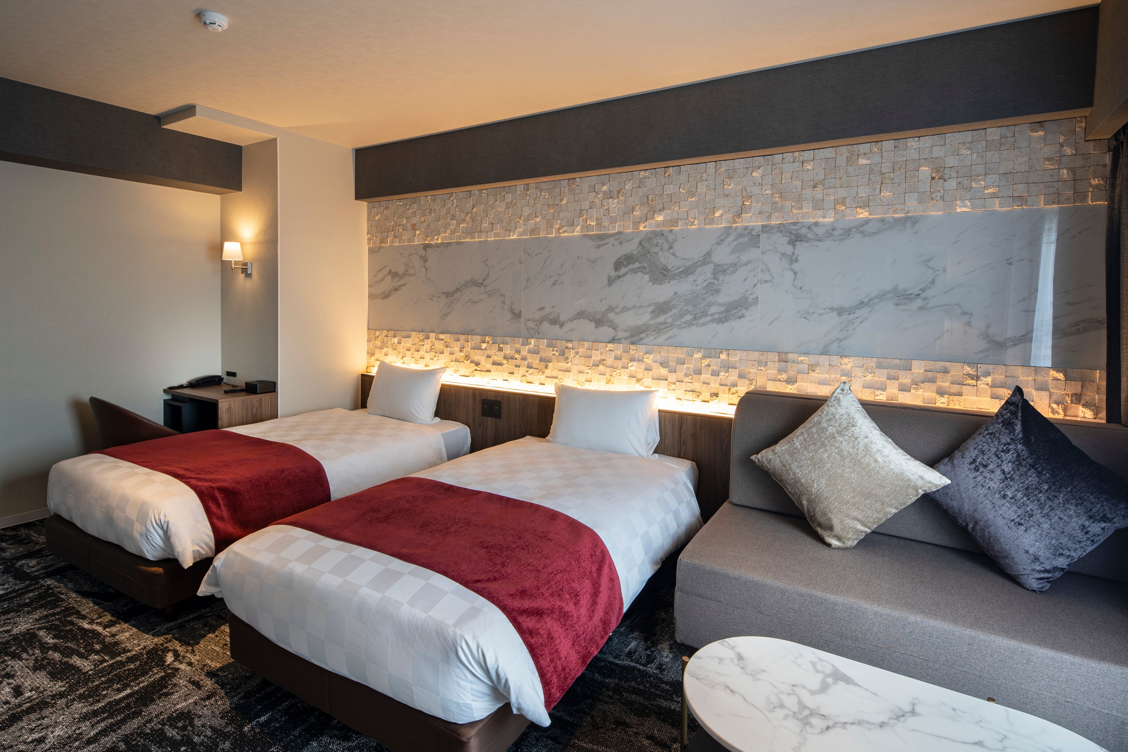 自由の象徴である柳(英語でwillow)のように、枠にとらわれることなく、柔軟な発想や遊び心でゲストの期待を越える“価値ある滞在”を演出したい。ホテル名にはそんな想いが込められています。周辺には串カツ店などの老舗が軒を連ねるジャンジャン横丁や、昔ながらの遊びを体験できる遊技場が立ち並ぶ賑わいあふれる街にありながら、スタイリッシュかつシックなホテルとなっています。
