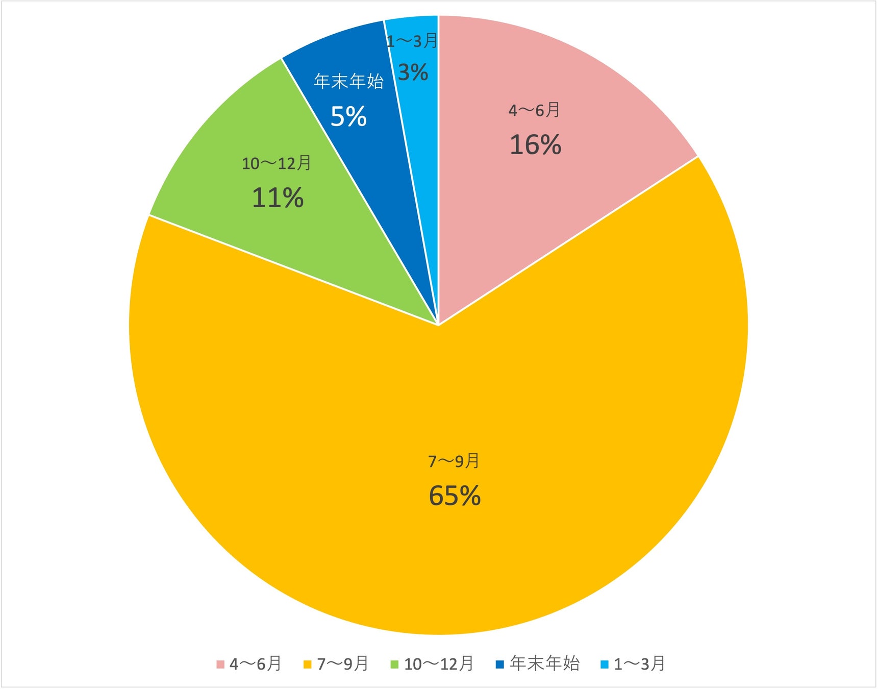 同じく、Q1で「はい」と回答した方に対して「Q3.いつ行くことが多いですか?(N=177)」と質問をしてみた。回答は7〜9月のサマーシーズンと回答する方が圧倒的に多かった。