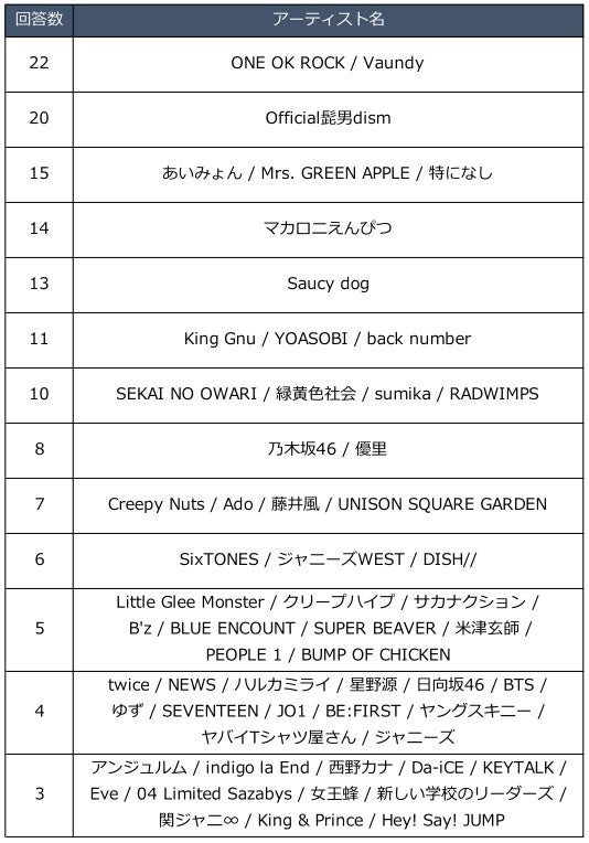 また、回答するアーティストのジャンルがロックバンドからアイドルまでバラバラであることに若年層ならではの多様性を感じる。