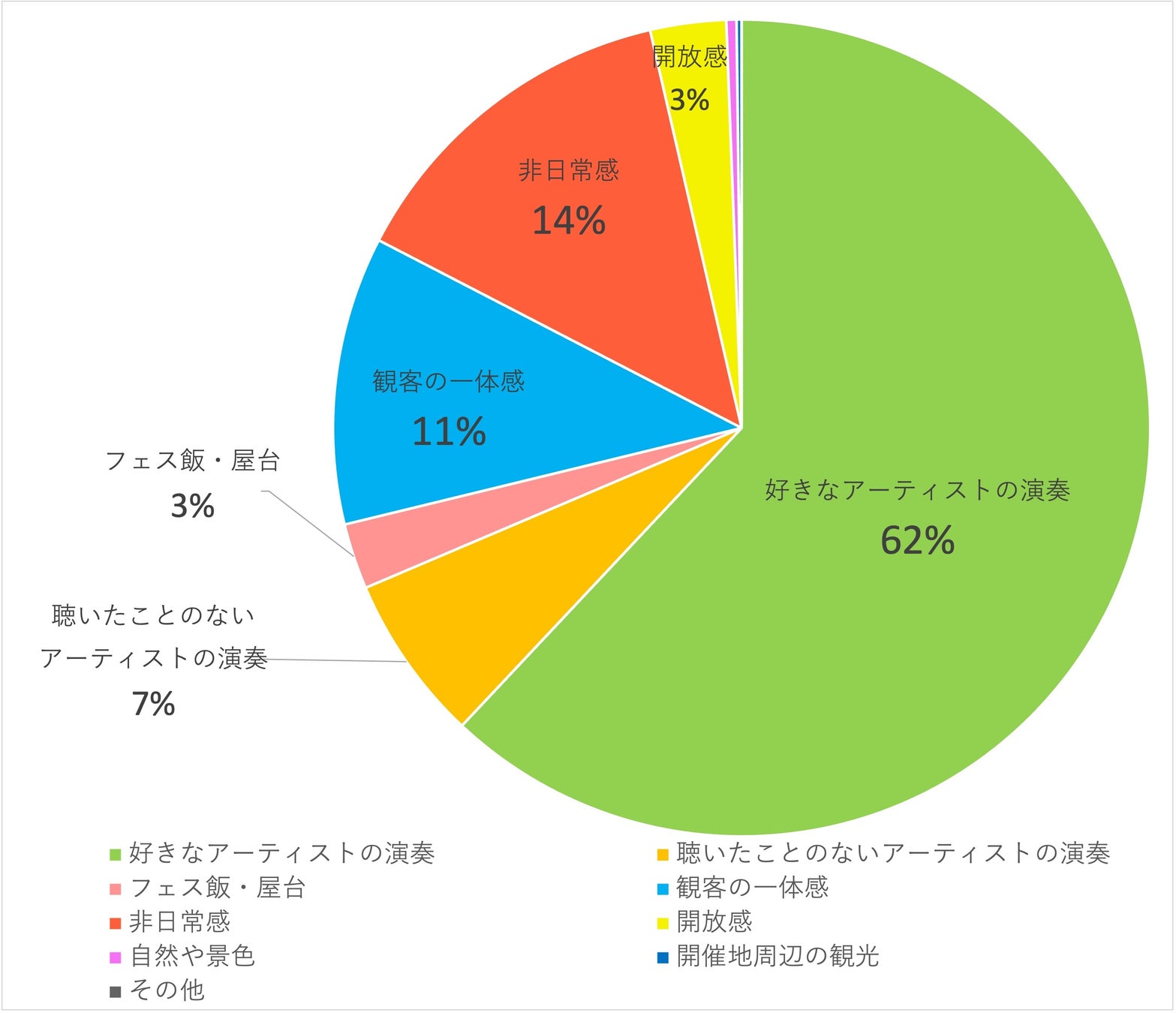 フェスと言えばワイワイと楽しむレジャーの印象が強い方もいると思うが、多くの方は好きなアーティストのライブを見るための音楽鑑賞目的でフェスを選んでいるようだ。