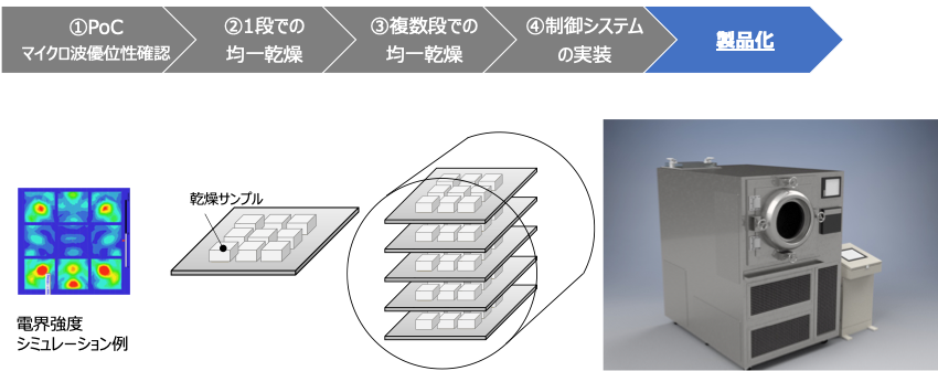 今後は、本装置の販売により、食品・医薬等の業界でマイクロ波凍結乾燥を普及し、次いで医薬製造向けのGMP※1準拠装置の提供も進めていく計画です。当社は、これまで広く課題となっていた時間短縮等の解決を通じて、凍結乾燥技術のイノベーションを目指してまいります。