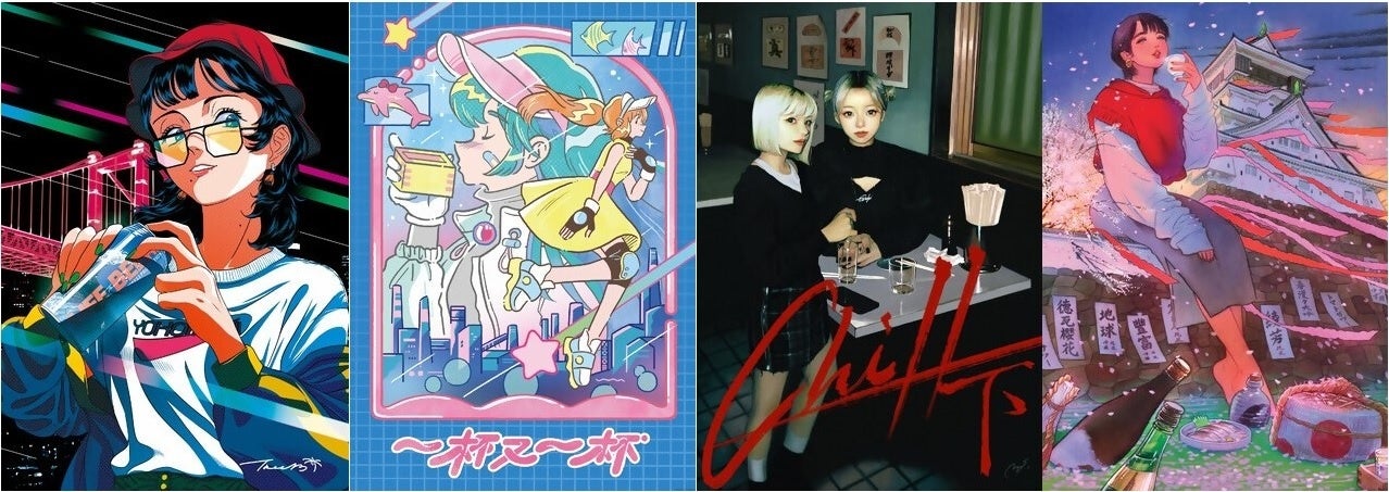 アジアで活躍する4名のイラストレーターとのコラボレーション企画。北九州発祥といわれる「角打ち」をテーマに、各アーティストにより独自性を活かしたイラストを制作しました。